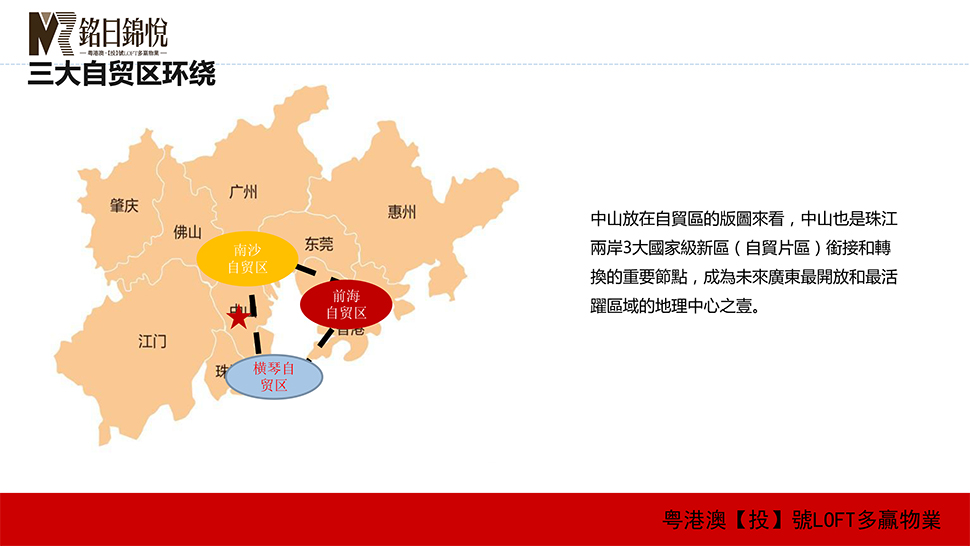 项目旁更有天奕国际广场项目、迪兴德宝怡高等大型综合体项目,是中山市未来政府重点发展核心区域。港珠澳大桥已经全线通车,进一步加快粤港澳三地的经济往来与深度合作。深中通道和港珠澳大桥的建成也将有利于中山业主便捷享用周围五大机场,为便捷出行提供多种选择。随着深中通道的正式动工建设,从深圳 30 分钟即可到达中山,实现深中两城“半小时生活圈”指日可待。