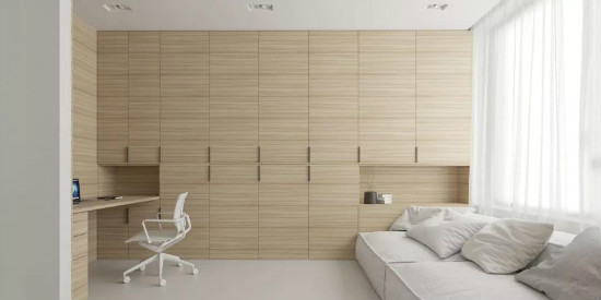 从色彩上来说,极简风格给人的直观印象,便是利用“白色”这一干净纯粹的色调来做大量铺陈,巧妙地奠定空间的简约基调。