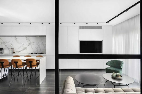 黑、灰色调皆可作为辅助色来凸显层次,局部加入跳跃的亮色形成视觉焦点,让整个画面在保持通透、敞亮的同时,又不乏现代时尚的气息。