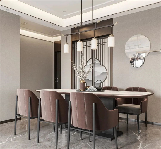 基于现代主义家居的简约时尚,又融入中式家居的文化内涵,贯通中西、时尚优雅的新中式主义家居设计,成为家居国潮风的代表之一。中山帮忙装修网公司分享。